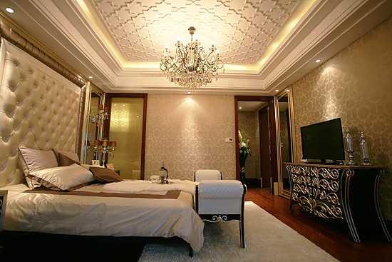 在楼王样板间现场,通过近35平米的景观阳台可以直瞰浏阳河景观,主卧内设独立衣帽间、更衣室、卫生间、270度拐角景观阳台等,整体设计非常舒适,也充分体现了豪宅居家的一种大气。