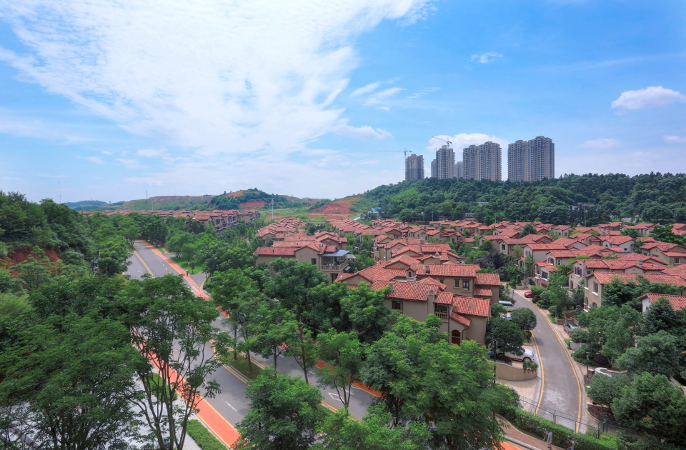 导语:中航城坐落于长沙南城的50万㎡自然山林中,10万棵树木、300余种山地原生植物、上百种功能性植物、5个山坡4个山谷、多个天然湖畔将小区重重包裹,郁郁葱葱,浑然天成。在本网记者到访的前一天,长沙市委书记易炼红也来到了中航城,并将中航城称为长沙样板楼盘之一,给予了极高评价。本期大雄看楼带您走进生长在绿色中的小区—中航城。