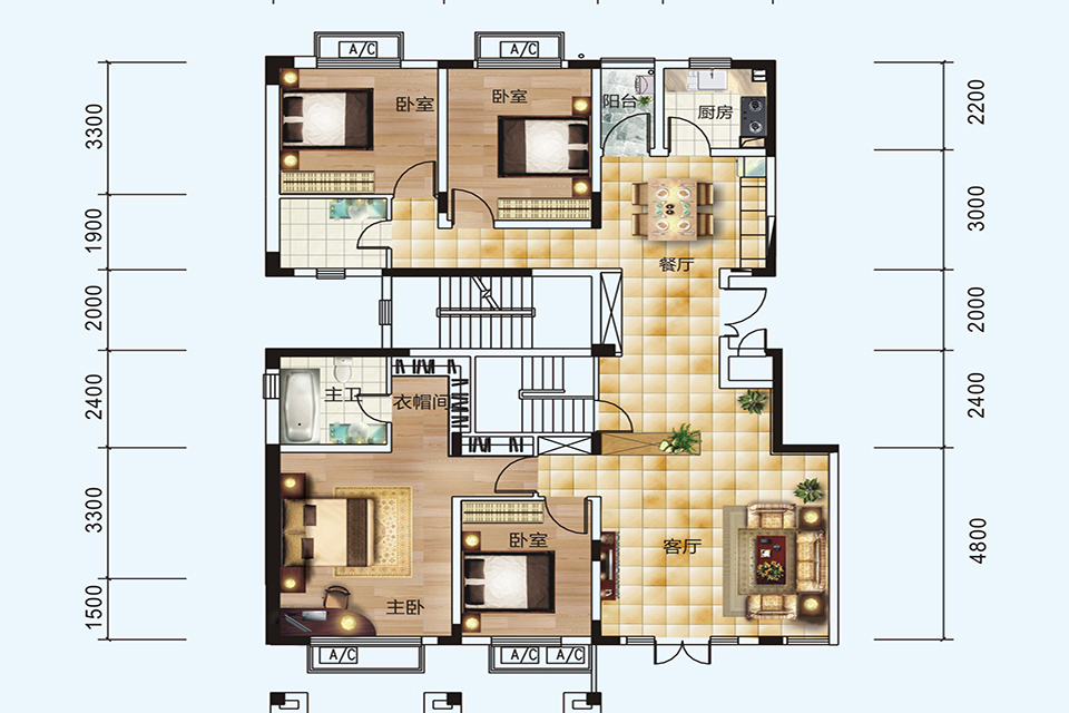 有一定比例商场、超市、学校、医院等配套设施,在1500-2000米范围内有商场、超市、学校、医院。