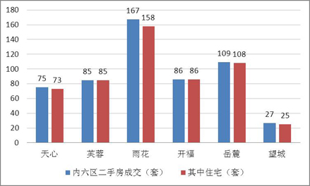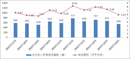 依据长沙市房地产市场预警预报动态监测系统数据显示,上周(2015.06.21-2015.06.27)长沙内六区二手房成交549套,5.92万平方米,套数环比下跌18.18 %;其中住宅成交535套,5.81万平方米,套数环比下跌16.93%。 [更多]