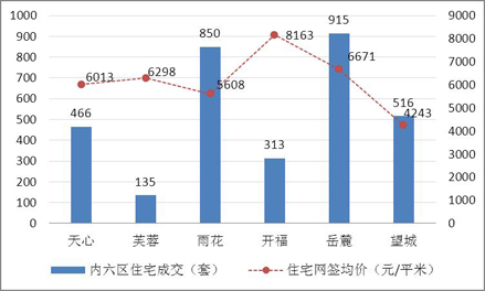 上周(2015.06.21-2015.06.27)长沙内六区住宅网签3195.套,37.05万平方米,套数环比上涨30.78%;内六区住宅网签均价为6066元/平方米,环比下跌1.62%。